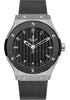 45mm zirconium case, black ceramic bezel, carbon dial, self winding HUB 1100 movement, approximately 42 hours of power reserve, black rubber strap with deployant buckle. Water resistant to 50 meters.