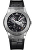 Hublot Classic Fusion Extra-Thin Skeleton King Gold Watch 45mm titanium case, titanium bezel vertical satin finish, sapphire dial with silvered Hublot logo transfer, hand-wound skeleton HUB 1300 movement with small seconds at 7 o'clock, approximately 90 hours of power reserve, black alligator and rubber strap with deployant buckle. Water resistant to 50 meters.