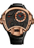 Hublot MP-02 Key Of Time King Gold Watch 56.2 x 51.7 mm satin-finished and microblasted 18K king gold case, sapphire crystal with anti-reflective treatment, black dial with multilayered dial, satin-finished and microblasted gold-plated appliques with red luminescent and black nickel-plated hands with red luminescent, HUB9002 manual movement with column wheel and power reserve, tourbillon, approximately 100 hours of power reserve, black smooth rubber strap, satin-finished 18K king gold and microblasted black PVD titanium deployant buckle. Water resistant to 30 meters.
