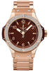Hublot Big Bang Cappuccino Watch 38mm 18K red gold case, 18K red gold bezel set with 126 diamonds (0.87ct), brown composite resin lateral inserts and bezel lugs, chocolate carbon stamped dial, quartz HUB 2900 movement, 18K red gold bracelet. Water resistant to 100 meters.