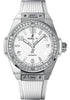 Hublot Big Bang One Click Steel White Diamonds Watch 39 mm satin-finished and polished stainless steel case, polished stainless steel bezel set with 42 diamonds for 1.00ct, sapphire crystal with anti-reflective treatment, mat white dial, HUB 1710 self-winding movement, approximately 50 hours of power reserve, white structured lined rubber strap with "one click" interchangeable system, stainless steel deployant buckle. Water resistant to 100 meters.