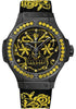 Hublot Big Bang Broderie Sugar Skull Fluo Sunflower Limited Edition of 100 Watch 41 mm polished black ceramic case, polished black-plated bezel set with 36 yellow sapphires with 6 H-shaped titanium screws, sapphire crystal with anti-reflective treatment, carbon fiber with black silk upper layer and yellow embroidery dial set with 12 yellow sapphires, HUB 1110 self-winding movement, approximately 42 hours of power reserve, black rubber with yellow embroidery strap, black-plated stainless steel deployant buckle. Water resistant to 100 meters.