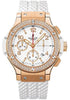 Hublot Big Bang Portocervo Watch 41mm 18k red gold case, 18K red gold bezel set with 114 diamonds (1.22 ct), white composite resin lateral inserts and bezel lugs, white dial, self winding HUB 4300 movement with chronograph function, approximately 42 hours of power reserve, white rubber strap with deployant buckle. Water resistant to 100 meters.