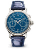 The new blue face revitalizes the Patek Philippe tradition of grand feu enamel dials, providing the Ref. 5370 Split-Seconds Chronograph with a highly contemporary touch. Its displays are eminently legible as befits a technical instrument. The fascinating movement stands out with a classic architecture, featuring trailblazing innovations and a redesigned rattrapante mechanism. The elegant platinum case is graced with a concave dial and flanks with satin-finished recesses.