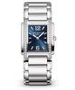 The medium-format Twenty~4 manchette quartz watch is infused with fresh momentum and comes in two new versions: the former Roman numerals are replaced with applied Arabic numerals in gold and trapeze-shaped gold markers take the place of the diamond markers. With its timeless and yet contemporary face, this watch is a companion for all of the hours of an active life. This steel model is available with a blue or gray sunburst dial. The crown is decorated with the Calatrava cross, Patek Philippe’s trademark emblem.