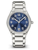 Blue sunburst dial. Gold applied numerals with luminescent coating.