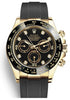 This Rolex Daytona watch features a stunning 40mm case made of yellow gold, a black rubber bracelet, and a black diamond dial that is sure to impress. The Rolex Daytona is the perfect watch for those who appreciate fine craftsmanship and classic design.