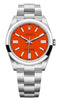 The Rolex Oyster Perpetual is designed with new ranges and vivid colors that feature excellent chronometric precision, a waterproof Oyster case, and self-winding of the movement via a bidirectional Perpetual rotor. This timepiece is crafted in a 31mm polished Oystersteel case and a distinctive red dial surrounded by luminous white hour markers and a smooth domed bezel. It is housed on a polished Oyster bracelet with flat three-piece links and folding oysterclasp.