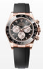 This Oyster Perpetual Cosmograph Daytona in 18 kt Everose gold with a bright black and Sundust dial and an Oysterflex bracelet, features a black Cerachrom bezel with tachymetric scale.