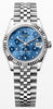 This Oyster Perpetual Datejust 31 in Oystersteel and white gold features an azzurro-blue floral-motif, diamond-set dial and a Jubilee bracelet.