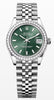 This Oyster Perpetual Datejust 31 in Oystersteel and white gold features a mint green dial and a Jubilee bracelet.