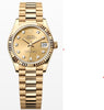 This Oyster Perpetual Datejust 31 in 18 kt yellow gold features a champagne colour, diamond-set dial and a President bracelet.