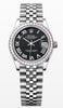 This Oyster Perpetual Datejust 31 in Oystersteel and white gold features a bright black dial and a Jubilee bracelet.
