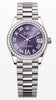 This Oyster Perpetual Datejust 31 in 18 kt white gold features an aubergine, diamond-set dial and a President bracelet.