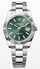 This Oyster Perpetual Datejust 41 in Oystersteel and white gold features a mint green dial and an Oyster bracelet.