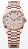 The Oyster Perpetual Day-Date 36 in 18 kt Everose gold with a diamond-paved dial, fluted bezel and a President bracelet.