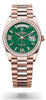 Day-Date 36 Oyster, 36 mm, Everose gold and diamonds. The Oyster Perpetual Day-Date 36 in 18 ct Everose gold, with a green aventurine, diamond-set dial, diamond-set bezel and a President bracelet. ...