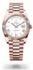 The Oyster Perpetual Day-Date 40 in 18 ct Everose gold with a white dial, fluted bezel and a President bracelet.