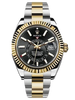 42mm white Rolesor case comprised of a 904L steel monobloc middle case, screw-down back, screw-down crown, 18K white gold fluted bezel with bidirectional rotatable Rolex Ring Command, scratch-resistant sapphire crystal with cyclops lens over the date and double anti-reflective coating, white dial, index hour markers, Rolex calibre 9001 automatic movement , second time-zone displayed via off-center rotating disc, Saros annual calendar with date at 3 o'clock and month indicated in discrete apertures at each of the 12 hour marks, stainless steel Oyster bracelet, folding Oysterclasp buckle with Easylink 5mm comfort extension link. Waterproof to 100 meters.
