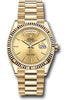 The Oyster Perpetual Day-Date 36 in 18 kt yellow gold with a champagne-colour dial, fluted bezel and a President bracelet. REF. 128238-0045 36mm 18K yellow gold case, screw-down back, screw-down crown with twinlock double waterproofness system, fluted bezel, scratch-resistant sapphire crystal...