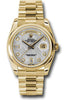 36mm 18K yellow gold case, domed bezel, meteorite dial, diamond hour markers, and President bracelet.