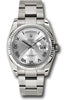 36mm 18K white gold case, fluted bezel, rhodium dial, Roman numerals, and Oyster bracelet.