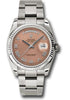 36mm 18K white gold case, fluted bezel, copper dial, Roman numerals, and Oyster bracelet.
