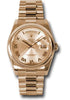 36mm 18K pink gold case, domed bezel, pink champagne dial, Roman numerals, and President bracelet.