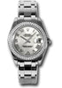 34mm 18K white gold case, 18K white gold bezel set with 116 diamonds, mother of pearl dial, Roman numerals, and Oyster 17mm bracelet.