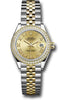 28mm yellow Rolesor case comprised of a 904L steel monobloc middle case, screw-down steel back, 18K yellow gold screw-down crown with twinlock double waterproofness system, 18K yellow gold diamond bezel, scratch-resistant sapphire crystal with cyclops lens over the date and double anti-reflective coating, champagne dial, Roman numerals, Rolex calibre 2236 automatic movement with center hour, minute and seconds hands, instantaneous date with rapid setting, and stop-seconds for precise time setting, yellow gold Rolesor Jubilee bracelet comprised of a combination of 904L steel and 18K yellow gold in five-piece links, concealed folding Crownclasp buckle. Waterproof to 100 meters.