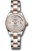 28mm Everose Rolesor case comprised of a 904L steel monobloc middle case, screw-down steel back, 18K Everose gold screw-down crown with twinlock double waterproofness system, 18K Everose gold diamond bezel, scratch-resistant sapphire crystal with cyclops lens over the date and double anti-reflective coating, sundust dial, 9 diamonds set in star shaped hour marker settings and 8 diamond set in Roman numeral IX, Rolex calibre 2236 automatic movement with center hour, minute and seconds hands, instantaneous date with rapid setting, and stop-seconds for precise time setting, Everose Rolesor Oyster bracelet comprised of a combination of 904L steel and 18K Everose gold in flat three-piece links, folding Oysterclasp buckle with Easylink 5mm comfort extension link. Waterproof to 100 meters.
