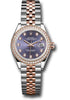 28mm Everose Rolesor case comprised of a 904L steel monobloc middle case, screw-down steel back, 18K Everose gold screw-down crown with twinlock double waterproofness system, 18K Everose gold diamond bezel, scratch-resistant sapphire crystal with cyclops lens over the date and double anti-reflective coating, aubergine dial, diamond hour markers, Rolex calibre 2236 automatic movement with center hour, minute and seconds hands, instantaneous date with rapid setting, and stop-seconds for precise time setting, Everose Rolesor Jubilee bracelet comprised of a combination of 904L steel and 18K Everose gold in five-piece links, concealed folding Crownclasp buckle. Waterproof to 100 meters.
