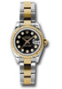26mm stainless steel case, 18K yellow gold fluted bezel, black dial, diamond hour markers, and stainless steel and 18K yellow gold Oyster bracelet.