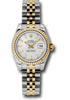 26mm stainless steel case, 18K yellow gold fluted bezel, silver dial, stick hour markers, and stainless steel and 18K yellow gold Jubilee bracelet.