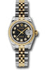 26mm stainless steel case, 18K yellow gold fluted bezel, black jubilee dial, diamond hour markers, and stainless steel and 18K yellow gold Jubilee bracelet.