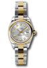 26mm stainless steel case, 18K yellow gold domed bezel, silver dial, diamond hour markers, and stainless steel and 18K yellow gold Oyster bracelet.