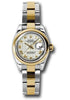 26mm stainless steel case, 18K yellow gold domed bezel, ivory pyramid dial, Roman numerals, and stainless steel and 18K yellow gold Oyster bracelet.