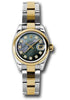 26mm stainless steel case, 18K yellow gold domed bezel, dark mother of pearl dial, diamond hour markers, and stainless steel and 18K yellow gold Oyster bracelet.