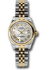 26mm stainless steel case, 18K yellow gold domed bezel, mother of pearl dial, Roman numerals, and stainless steel and 18K yellow gold Jubilee bracelet.