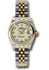 26mm stainless steel case, 18K yellow gold domed bezel, ivory jubilee dial, Arabic numerals, and stainless steel and 18K yellow gold Jubilee bracelet.