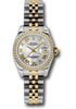26mm stainless steel case, 18K yellow gold screw-down crown, 18K yellow gold bezel set with 46 diamonds, scratch-resistant sapphire crystal with cyclops lens over the date, white mother-of-pearl dial, Roman numerals, Rolex calibre 2235 automatic movement, stainless steel and 18K yellow gold Jubilee bracelet with five-piece links, concealed folding Crownclasp buckle. Waterproof to 100 meters.