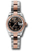 26mm stainless steel case, screw-down crown, 18K Everose gold fluted bezel, scratch-resistant sapphire crystal with cyclops lens over the date, black dial, Roman numerals, Rolex calibre 2235 automatic movement, stainless steel and Everose gold Oyster bracelet with three-piece links, folding Oysterclasp buckle with Easylink 5mm comfort extension link. Waterproof to 100 meters.