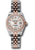 26mm stainless steel case, 18K pink gold fluted bezel, mother of pearl diamond Roman VI dial, Roman numerals with 11 diamonds set on VI, and stainless steel and 18K pink gold Jubilee bracelet.
