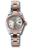 26mm stainless steel case, 18K pink gold domed bezel, silver concentric circle dial, Arabic numerals, and stainless steel and 18K pink gold Oyster bracelet.