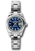 26mm stainless steel case, domed bezel, blue dial, index hour markers, and Oyster bracelet.