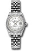 26mm stainless steel case, 18K white gold bezel set with 46 diamonds, mother of pearl dial, diamond hour markers, and Jubilee bracelet.
