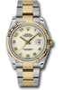 36mm stainless steel case, 18K yellow gold fluted bezel, ivory Jubilee dial, Arabic numerals, and stainless steel and 18K yellow gold Oyster bracelet.