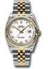 36mm stainless steel case, 18K yellow gold fluted bezel, white dial, Arabic numerals, and stainless steel and 18K yellow gold Jubilee bracelet.