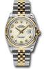 36mm stainless steel case, 18K yellow gold fluted bezel, ivory Jubilee dial, Arabic numerals, and stainless steel and 18K yellow gold Jubilee bracelet.