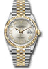36mm yellow Rolesor case with Oystersteel monobloc middle case, screw-down steel back, screw-down 18K yellow crown, 18K yellow fluted bezel, silver dial, Roman numerals with diamond set 6 and 9, Rolex calibre 3235 self-winding movement with date at 3 o'clock, approximately 70 hours of power reserve, yellow Rolesor Jubilee bracelet with five-piece links, folding Oysterclasp buckle with Easylink 5mm comfort extension link. Waterproof to 100 meters. Redesigned for Baselworld 2018 with updated case sides, lugs, and calibre 3235 movement.